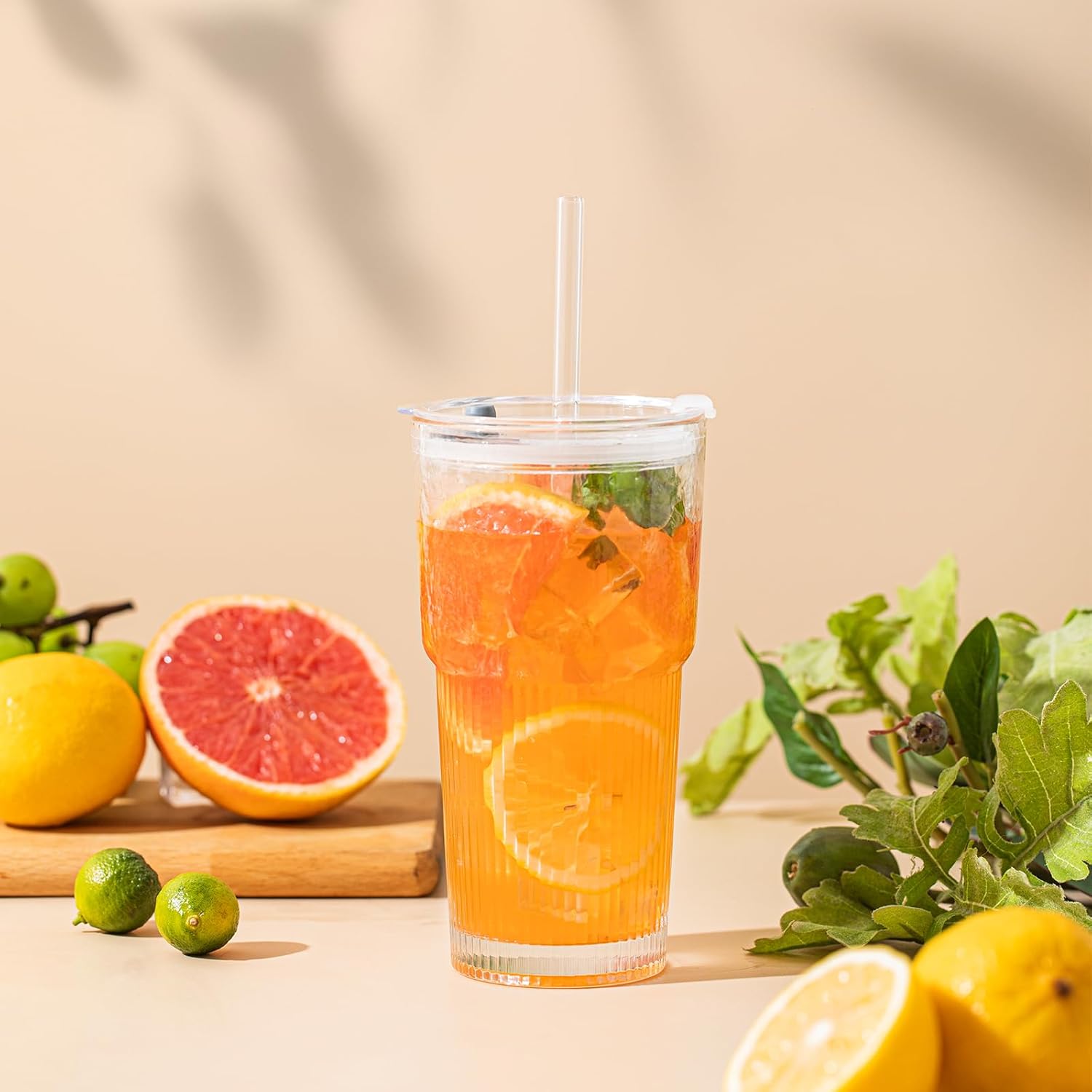 Our tumbler holds 19-20oz, making it the perfect size for your daily drinks—larger than a standard glass but not oversized. It's ideal for iced coffee, smoothies, juices, and cocktails.